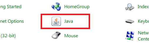 - Find and open "Java" item in the control panel