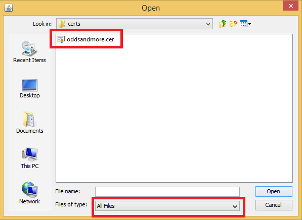 - For "Files of type" select "All Files"