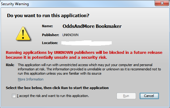 When running the application you'll be presented with "Unknown publisher" alert window.